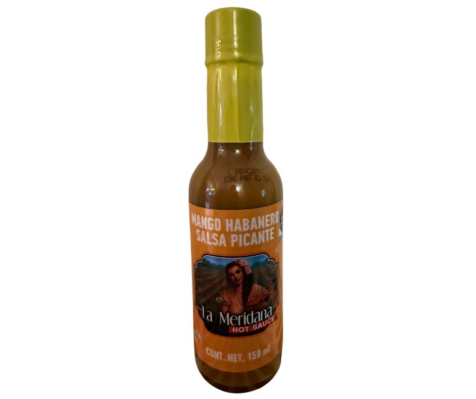 Zutaten: Mango, Wasser, Habanero-Pfeffer, Essig, Zitronensäure (ph-Kontrollmittel), Xanthan (Stabilisator), Knoblauch, Zwiebel, gefärbt mit Kurkuma.